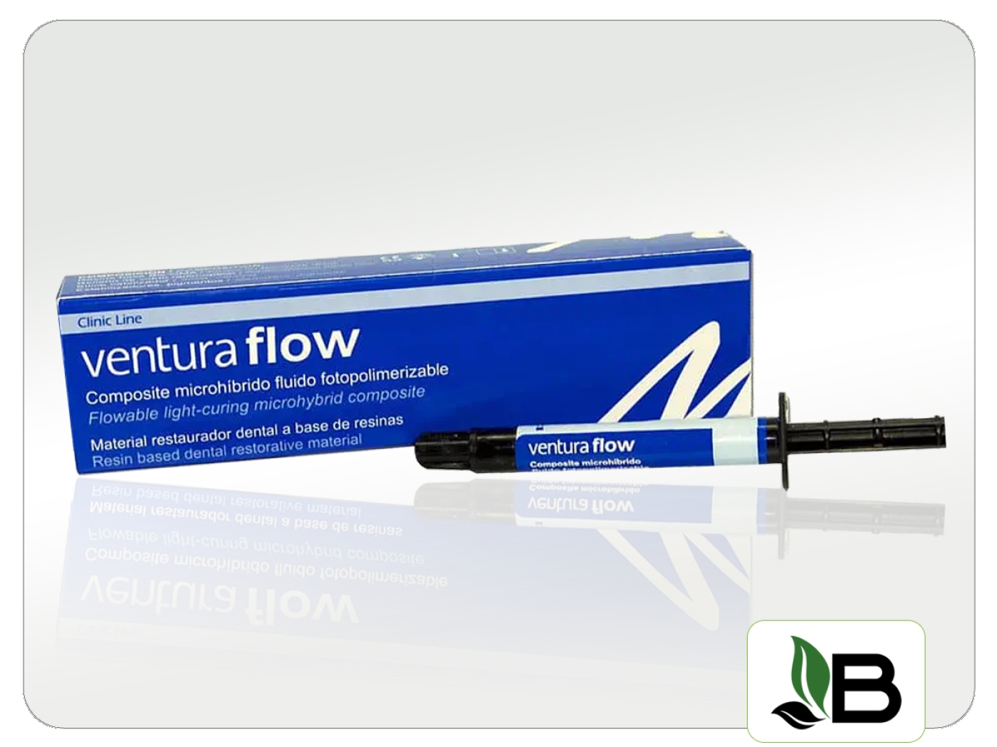 Ventura flow to kompozyt półpłynnej gęstości pozwalający na bardzo dobrą adaptację do ścian ubytku zęba, dzięki czemu zmniejsza ryzyko wprowadzenia powietrza i zamknięcia pustych przestrzeni, pozwala to także na znaczne zredukowanie naprężenia na brzegach wypełnienia. Odpowiednia lepkość preparatu umożliwia łatwe i bezproblemowe nałożenie.